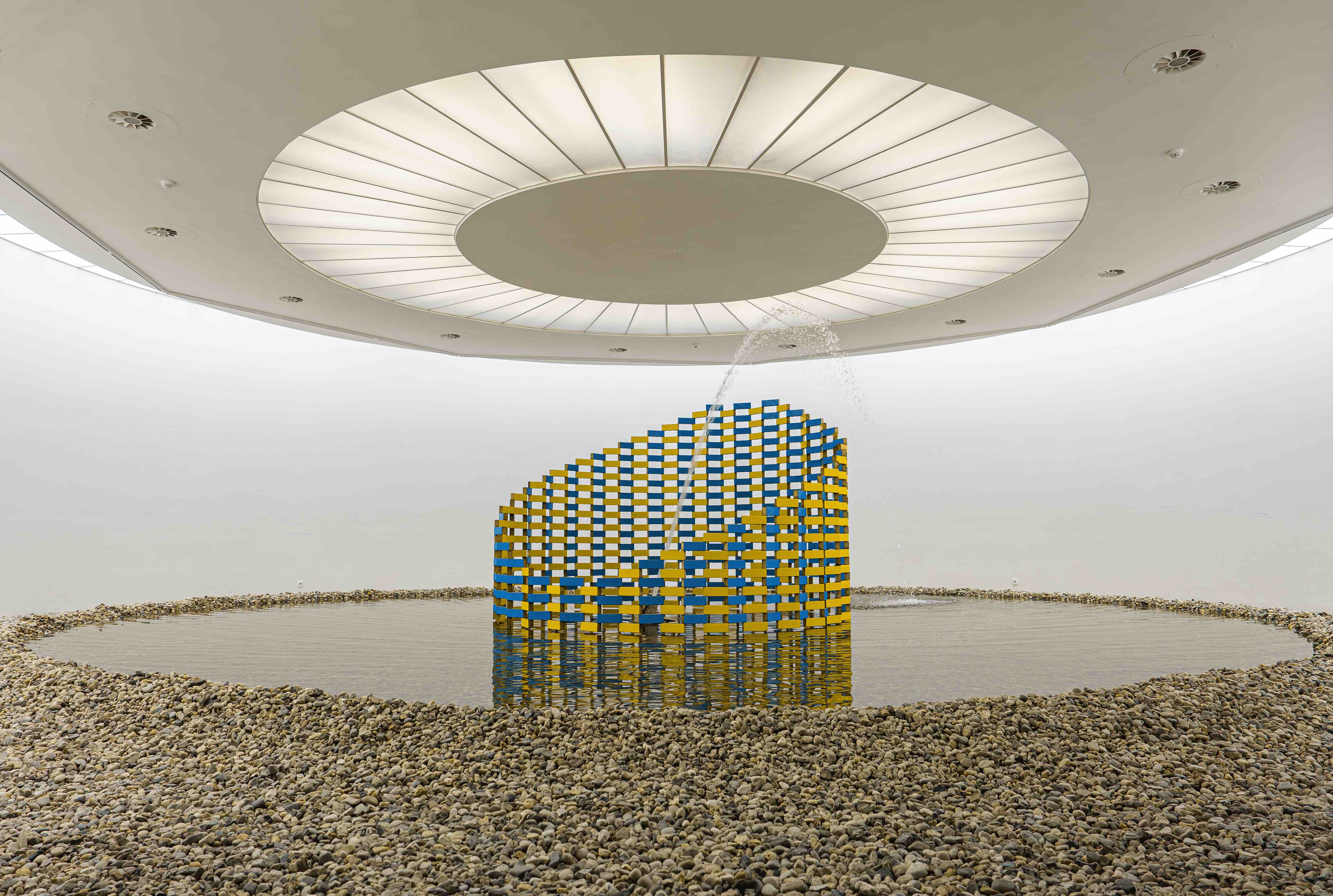 Sundance is a fountain that’s located in the middle of a huge crater. The fountain moves in the direction of the sun, as a reminder of the constant movements and changes in the universe. The installation invites viewers to reflect on the intersection of human technology and the natural world.