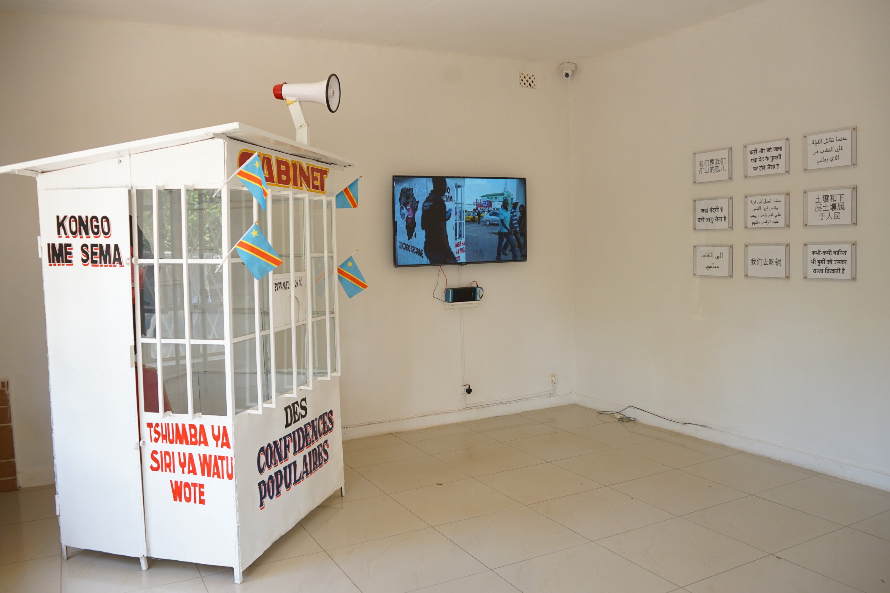 These collected critiques are later displayed as proverbs, translated into Hindi, Arabic, and Chinese, and presented to expats arriving at Lubumbashi’s airport — the gateway to Katanga, a region turned into a modern-day Wild West by waves of international investors. Here, the local population has been both exploited by and alienated from the global forces shaping their lives.